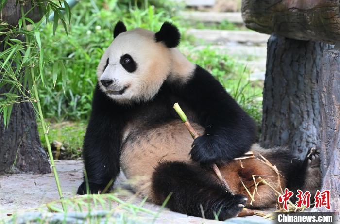 大熊猫作为“球宠”,是备受世界人民喜爱的珍稀濒危野生动物,也是传递中国人民友谊的友好使者。20世纪90年代以来,中国先后与20个国家的26个机构开展了大熊猫国际保护合作研究,对国外公众进一步了解中国大熊猫等野生动植物保护成效、生态文明建设成就及增进中外民间友好发挥了重要作用。到期到龄的旅外大熊猫陆续返回中国后,多数生活在中国大熊猫保护研究中心等机构。每只“海归”大熊猫都会有一份根据其性格特点制定的管理方案,在饲养员的精心照顾下,它们回家后过上了更美好的生活。图为7月3日,中国大熊猫保护研究中心雅安碧峰峡基地,大熊猫“贝贝”在外场休息。大熊猫“贝贝”,雄性,2015年8月22日出生在美国国家动物园。中新社记者 安源 摄