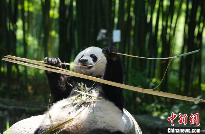 大熊猫作为“球宠”,是备受世界人民喜爱的珍稀濒危野生动物,也是传递中国人民友谊的友好使者。20世纪90年代以来,中国先后与20个国家的26个机构开展了大熊猫国际保护合作研究,对国外公众进一步了解中国大熊猫等野生动植物保护成效、生态文明建设成就及增进中外民间友好发挥了重要作用。到期到龄的旅外大熊猫陆续返回中国后,多数生活在中国大熊猫保护研究中心等机构。每只“海归”大熊猫都会有一份根据其性格特点制定的管理方案,在饲养员的精心照顾下,它们回家后过上了更美好的生活。图为7月5日,中国大熊猫保护研究中心都江堰基地,大熊猫“美香”在享用美食。大熊猫“美香”,雌性,1998年7月22日出生于中国大熊猫保护研究中心卧龙核桃坪基地,2000年12月6日旅居美国华盛顿国家动物园,并于2023年11月9日返回中国。中新社记者 安源 摄