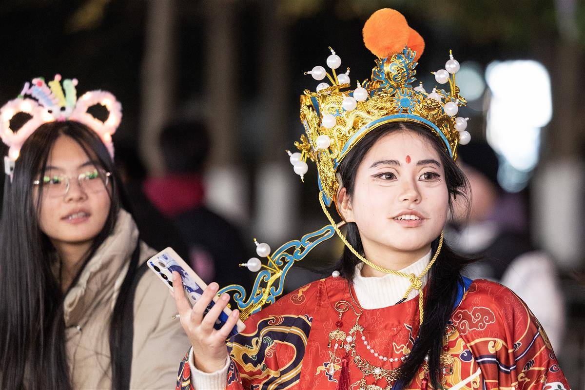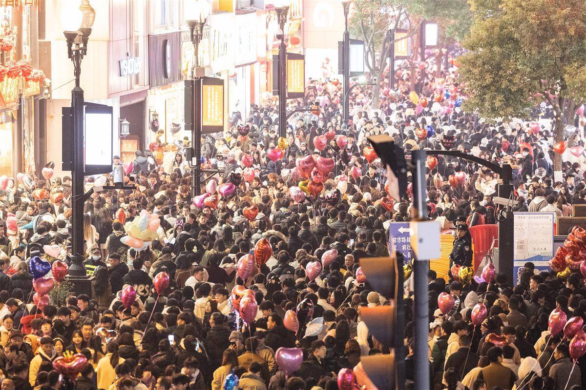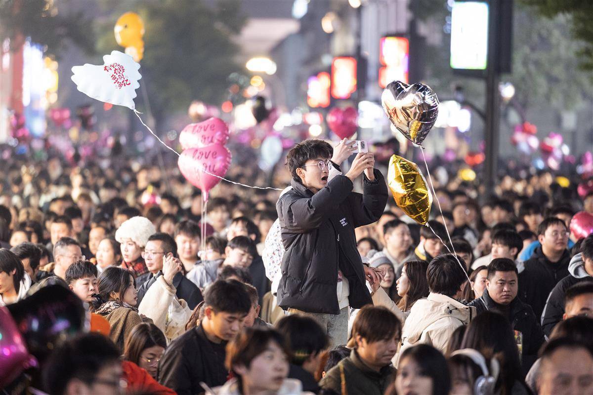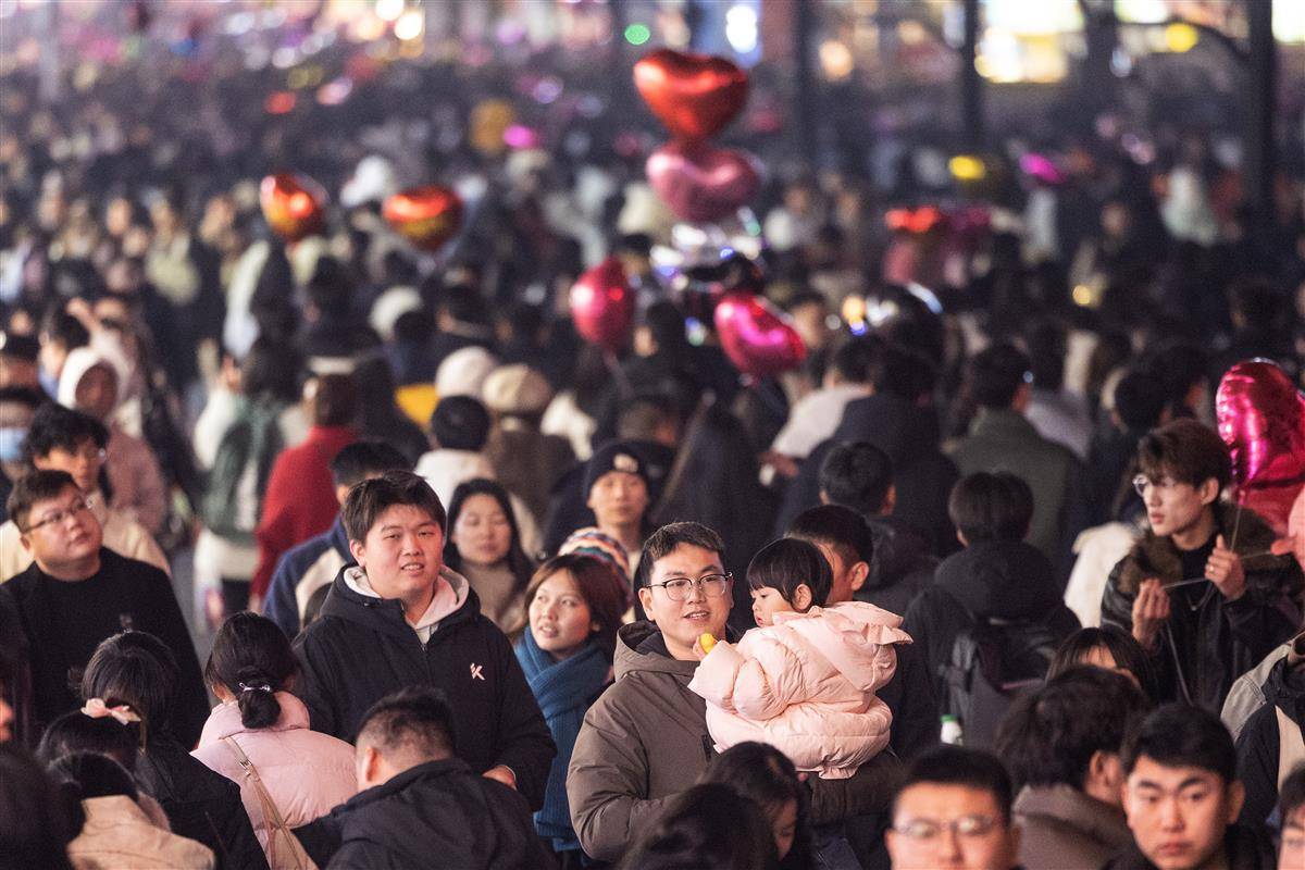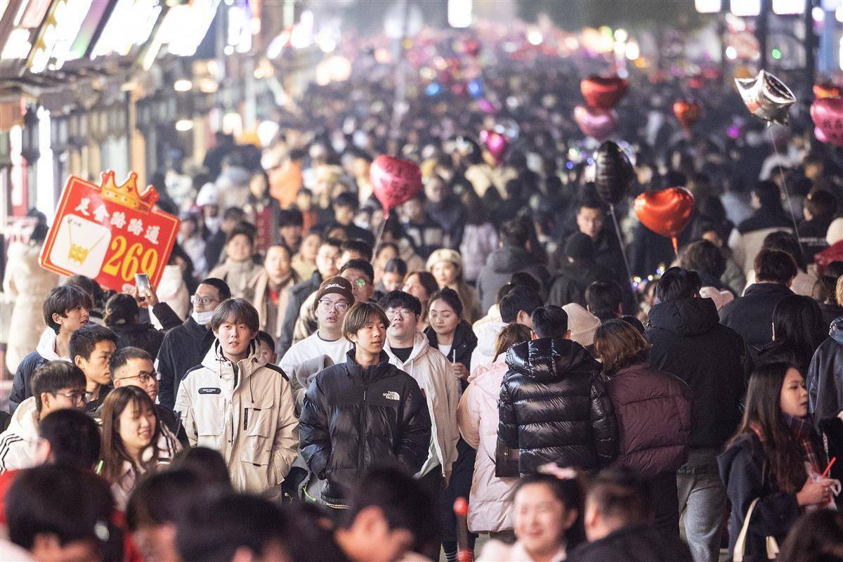 12月31日晚,武汉市江汉路步行街灯光璀璨,霓虹灯五彩斑斓,人们从四面八方涌向这里,共同等待新年的到来。小贩的叫卖声、孩子们的欢笑声交织在一起,充满了“烟火气”,让人感受到了这座城市的活力和热情。 (湖北日报全媒记者 任勇 摄)