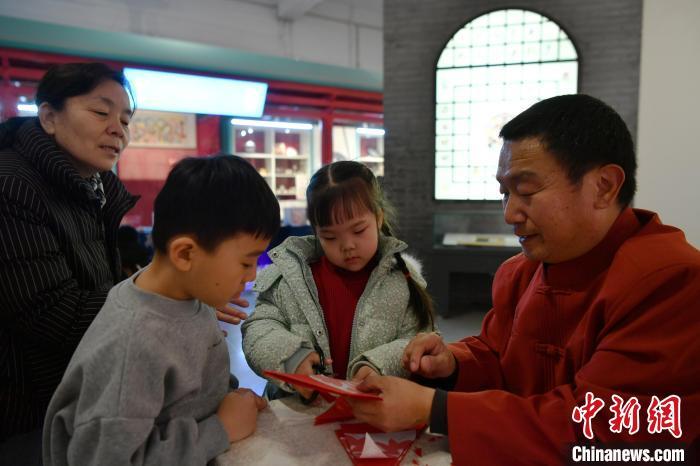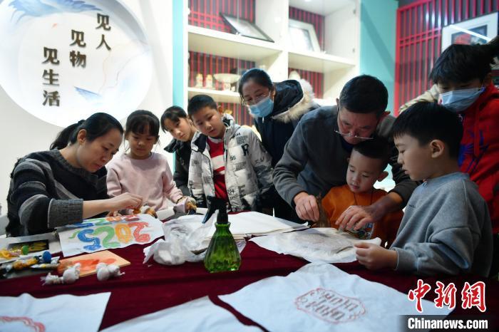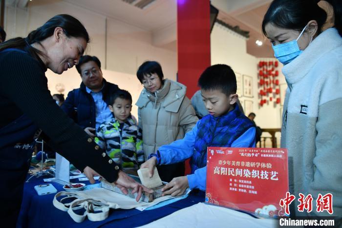 1月1日,小朋友在展示体验区零距离体验多种非遗技艺。由河北省文化和旅游厅主办的2025年“乐享河北”非遗会客厅系列活动——“我们的节日”非遗展演展示活动在位于石家庄的河北博物院举行。此次活动包括稀有剧种专场展演、青少年美育非遗研学体验等内容。中新社记者 翟羽佳 摄