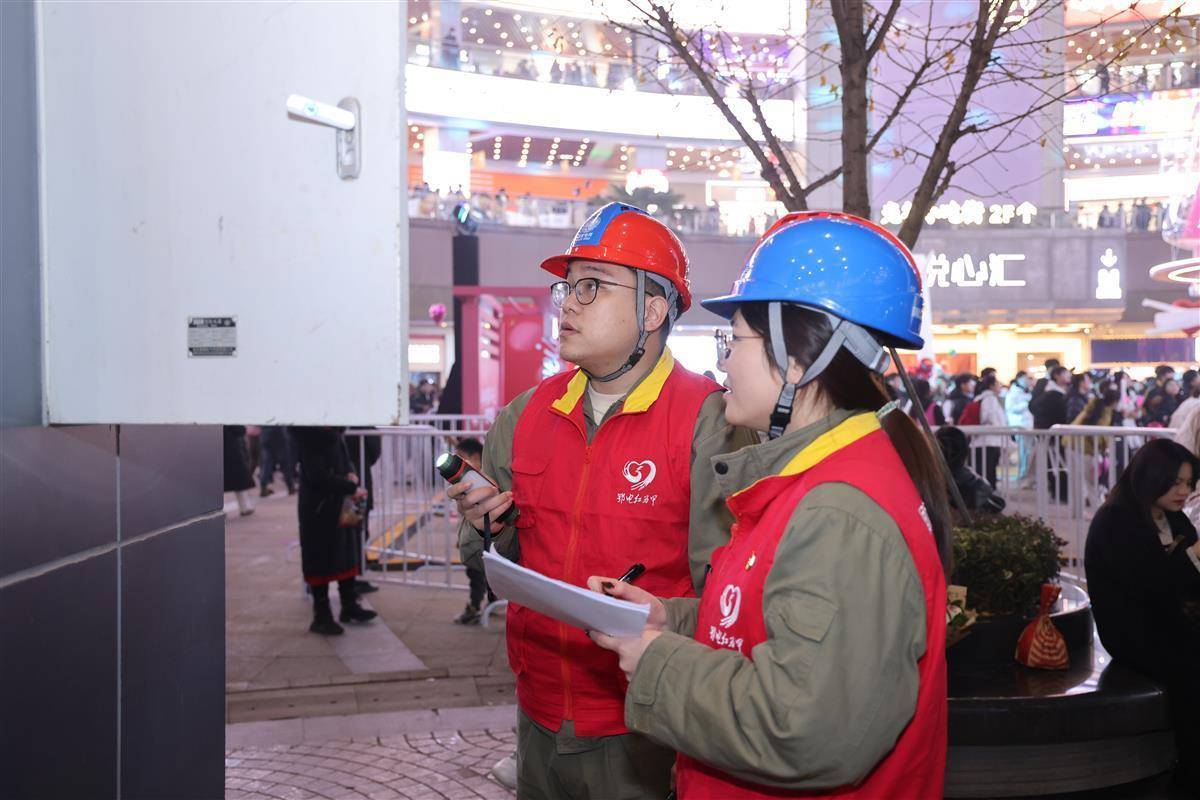 2025年1月1日凌晨,光谷步行街的欢乐氛围达到高潮,客流量预计达40万人次,电力负荷也逐渐达到高峰。国网武汉供电公司针对活动涉及的5个保电点、8条配电线路、2座变电站,再度制定完善“一点一案”“一线一案”“一站一案”应急预案。