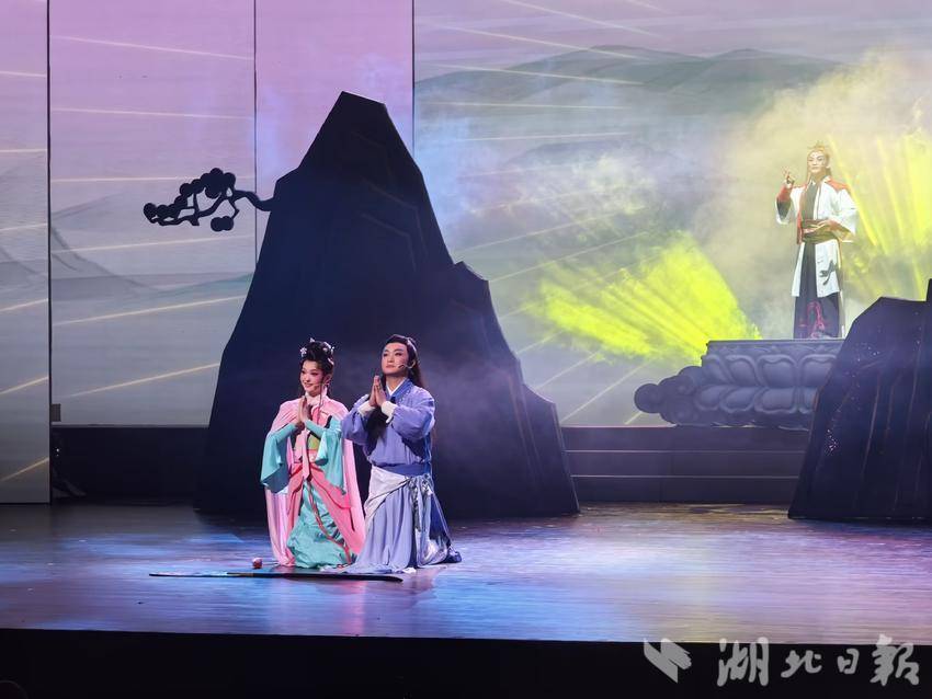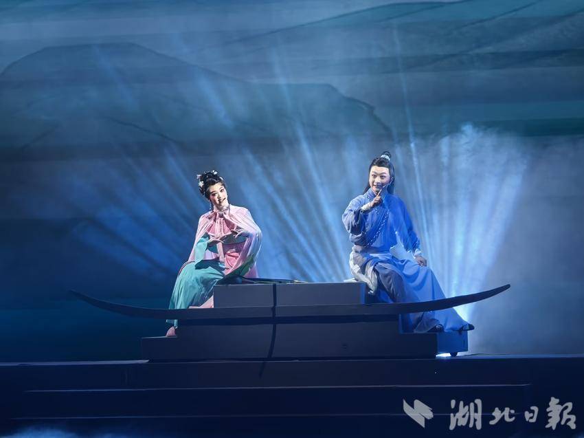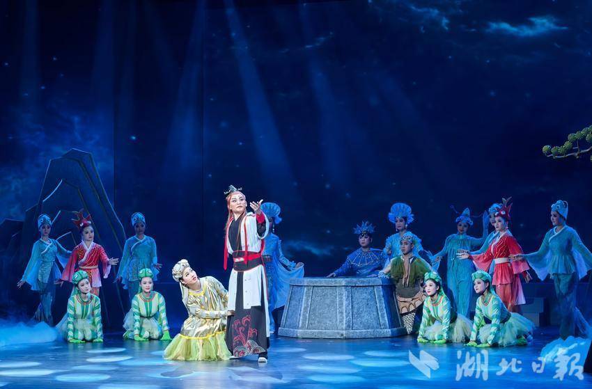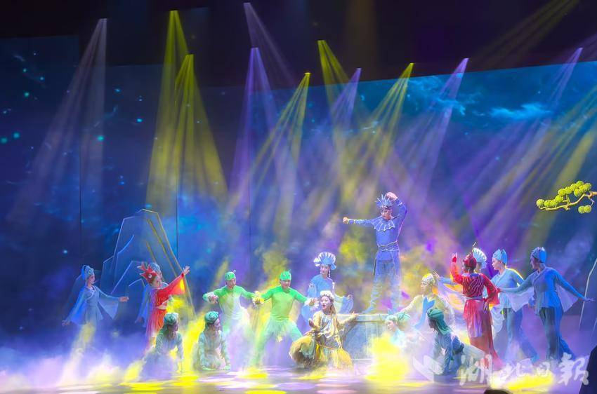 舞台上,碧湖仙岛的美景,优美动人的唱腔,绮丽曲折的故事,将观众引入到一段奇幻浪漫的神话传说中。