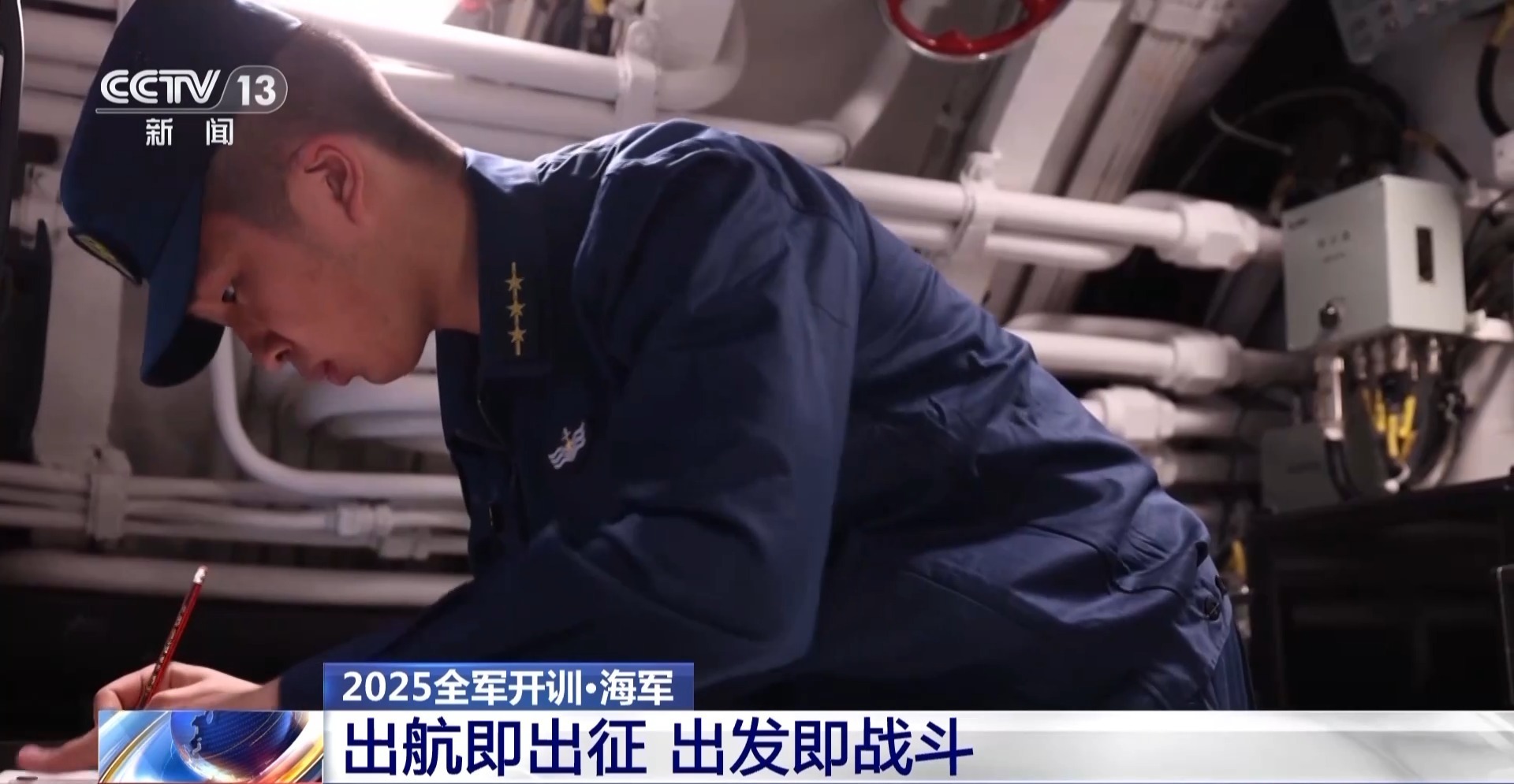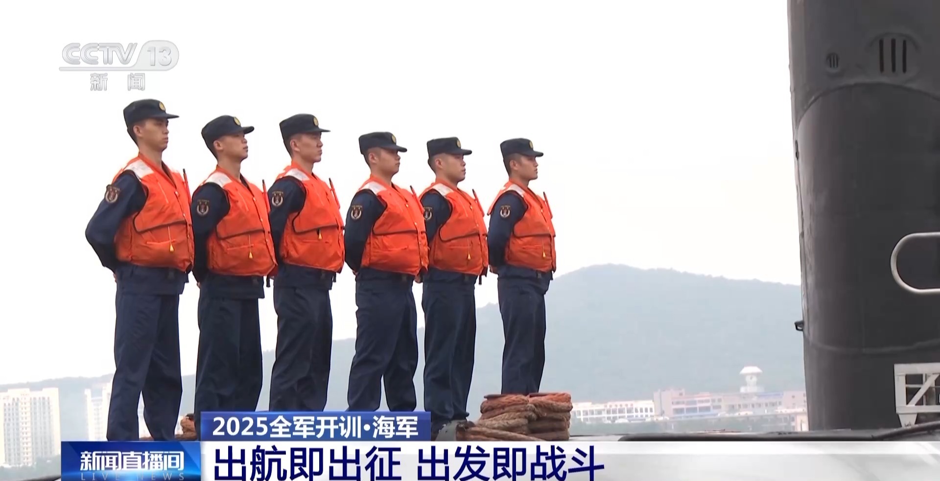 总台央视记者 王晓丹:由导弹驱逐舰与护卫舰组成的舰艇编队已经启航,奔赴训练海区,展开多天实战化训练。这一次训练,万吨大驱延安舰也将全程参与,将开展主炮对海对岸的射击以及副炮对空射击。对于海军各个部队来说,他们的训练贯穿全年始终,24小时X365天全时全域处于备战状态。新的一年里,他们将以最饱满最昂扬的精神状态,投入练兵备战,将在惊涛骇浪中壮筋骨、强能力,扎扎实实锤炼打赢能力。