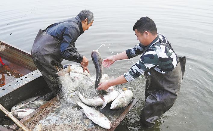 元旦期间,孝感王母湖畔,黄春兵父子俩正忙着打鱼。他们的渔场是王母湖畔最大的循环养鱼池。黄春兵父子俩引入王母湖活水养鱼,借鉴外地先进经验深挖鱼池精养鱼苗,鱼塘产生的肥料用于滋养树林,湖边林带又有助于净化湖水,进而形成生态养殖正循环。今年,他们的50亩鱼塘产量可达7万公斤。