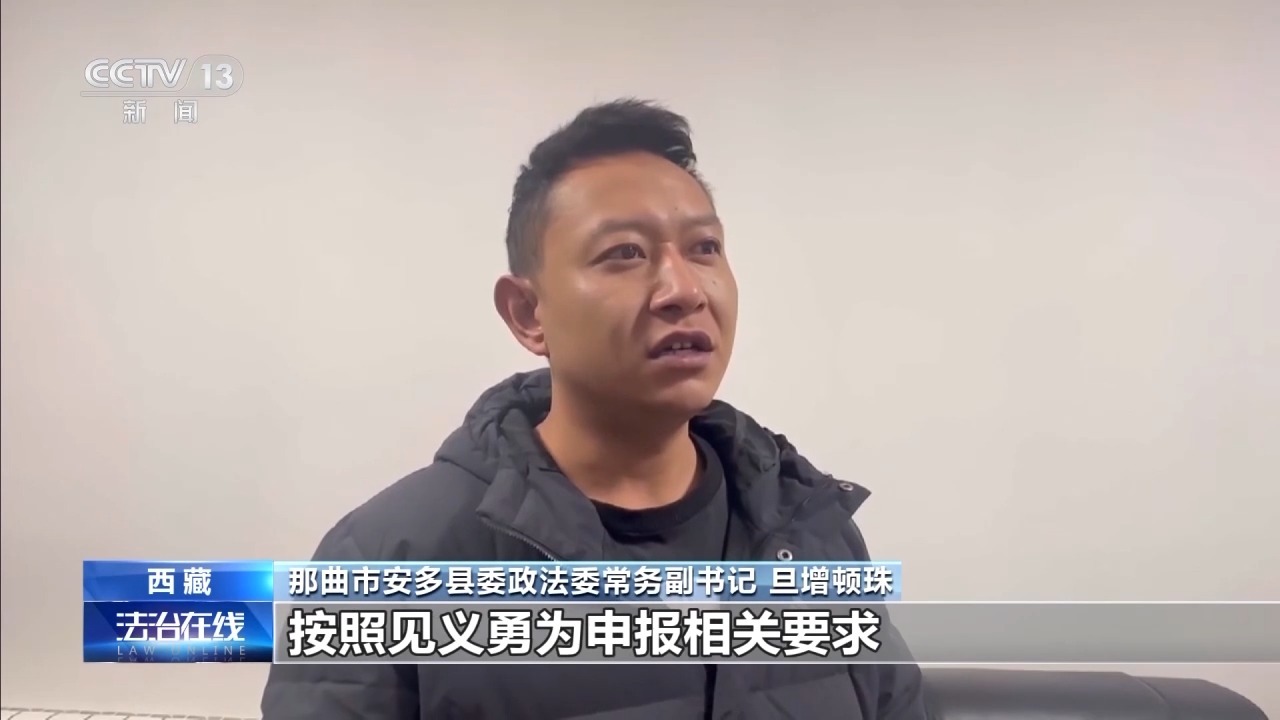 那曲市安多县委政法委常务副书记 旦增顿珠:我们安多县委政法委按照见义勇为申报相关要求,我们对该同志的见义勇为行为进行了评审、公示,最后确认了他的见义勇为。