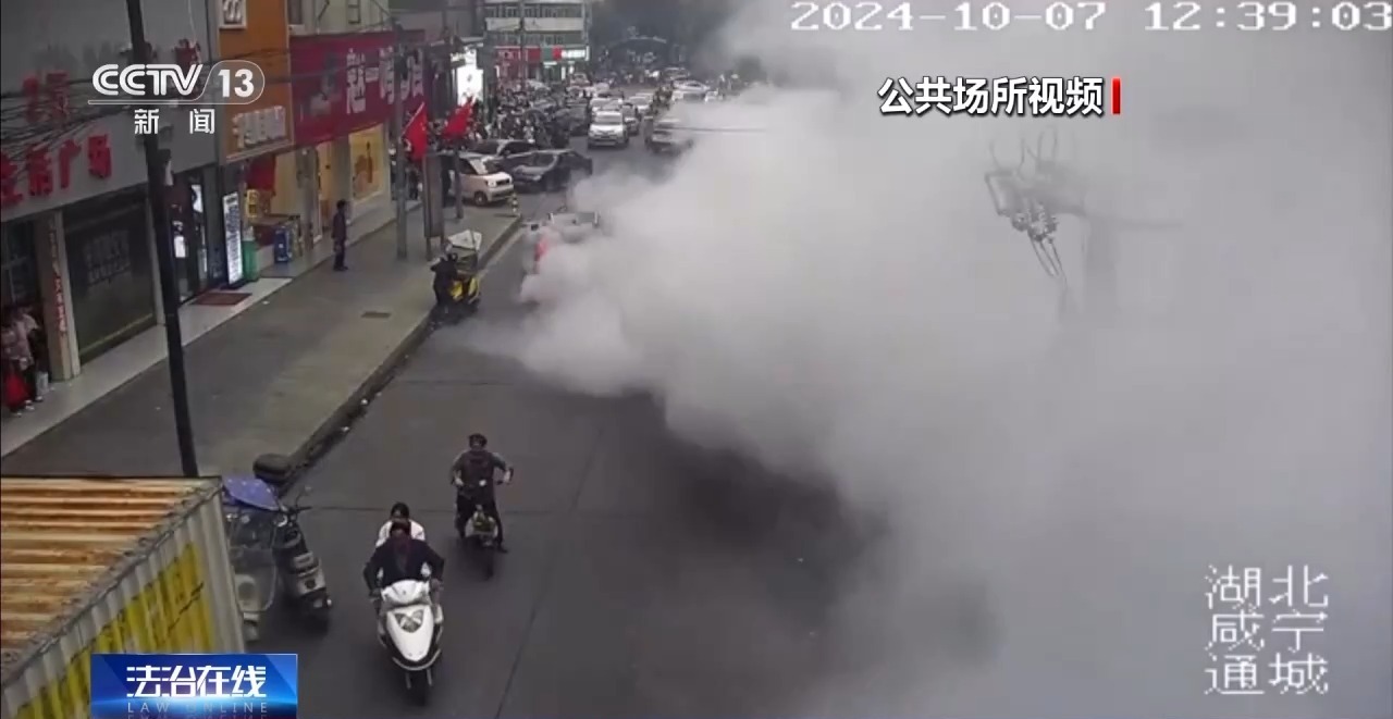 在湖北咸宁通城县,街道中间两辆车顶在了一起动弹不得,现场冒出了大量白烟,这一切是怎么发生的呢?