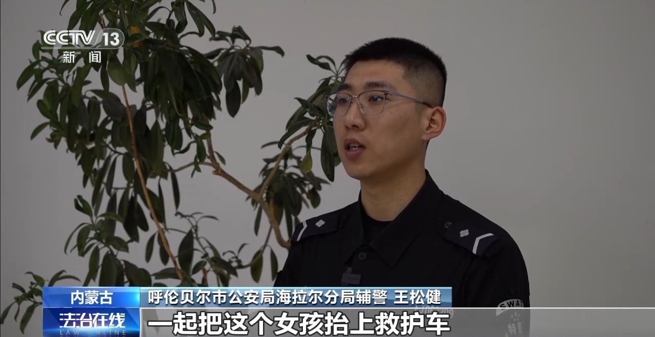 呼伦贝尔市公安局海拉尔分局辅警 王松健:这个女孩上岸之后已经有点痉挛的状态了,已经冻僵了,我们选择两个人抬着的方式一起把这个女孩抬上救护车。