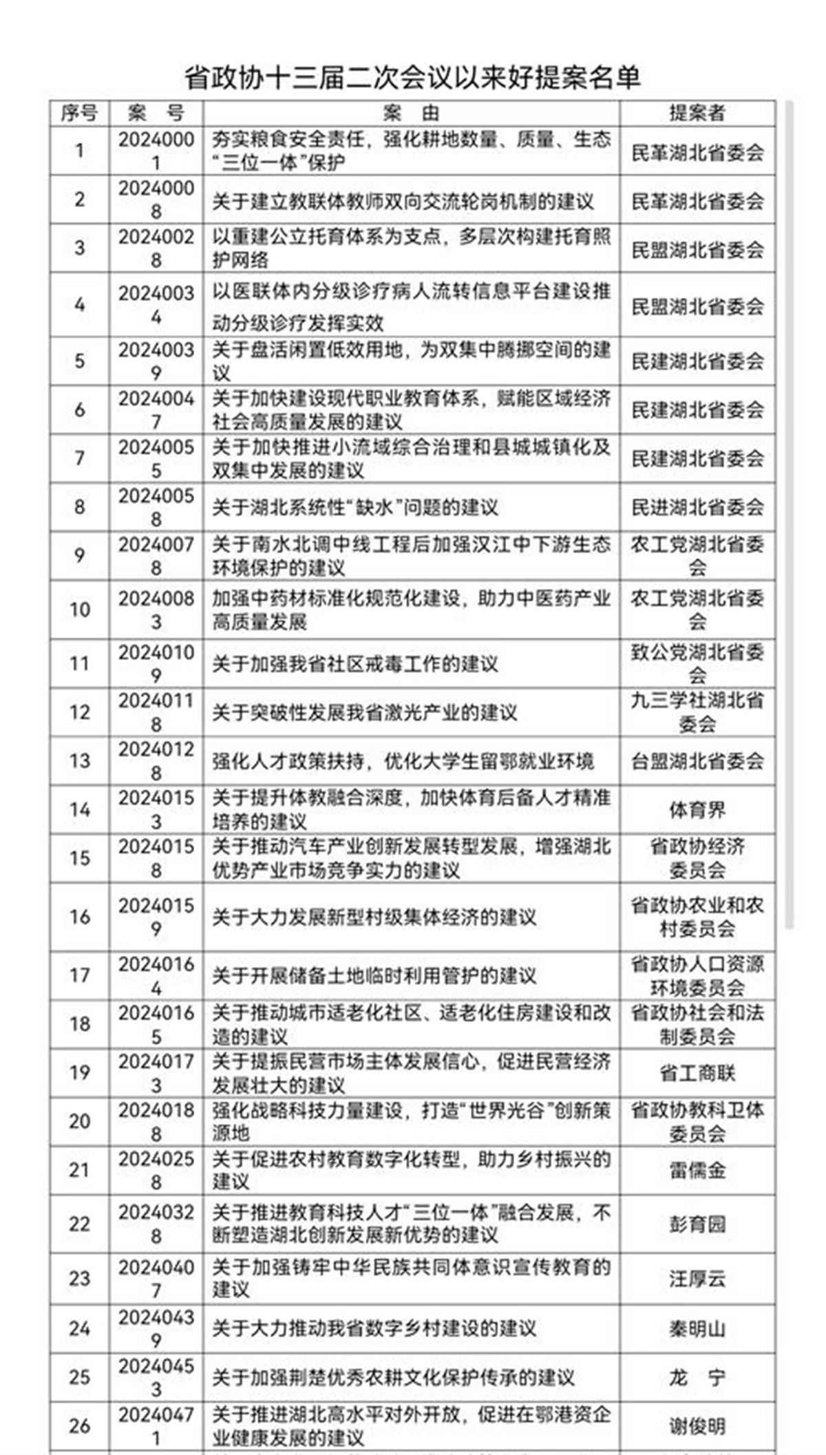 湖北省政协十三届二次会议以来好提案名单: