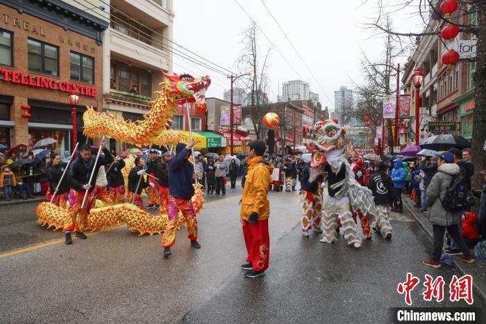 资料图为当地时间2024年2月11日,农历甲辰龙年正月初二,作为加拿大华人社区规模最盛大的春节庆祝活动,温哥华华埠新春大游行冒雨举行。来自华人社区及其他多个族裔社区的约百个团体参加本次新春大游行,规模创下历史新高。 中新社记者 余瑞冬 摄