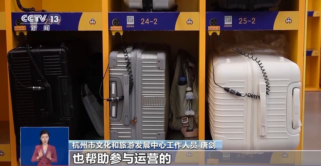 杭州市文化和旅游发展中心工作人员 唐剑:目前我们已经建立起了覆盖景区、景点、酒店、商圈和交通站点之间的行李寄存和寄送服务体系。游客的行李可以像快递一样在不同点位之间进行寄送,从而为游客节约了时间,让游客更方便地实现“行李跟人走”,而不用来来回回地去取行李。