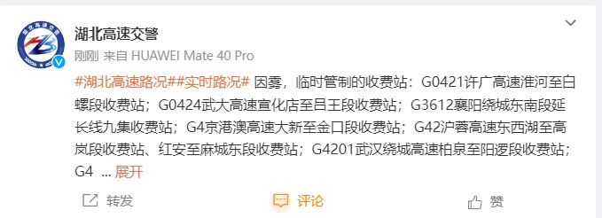 1月5日7时3分,湖北高速交警发布高速实时路况: