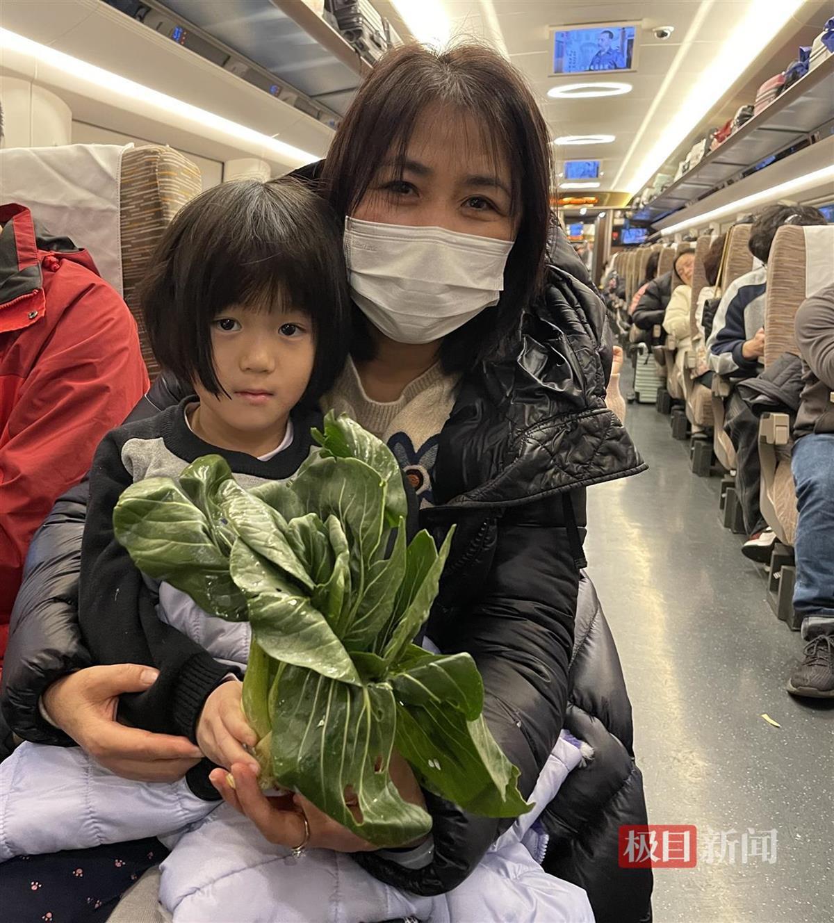 1月5日16时03分,刚刚登上首趟由武汉始发到香港的G885次列车,曹女士第一时间打开手提包,查看萝卜白菜是否被挤坏。她细心地把这些带着露水的蔬菜打理整齐,轻轻地把手提包放在行李架上。