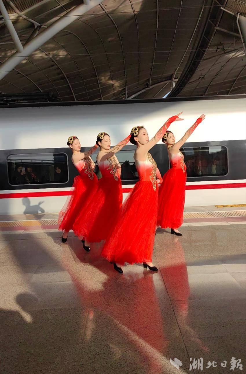 站台举办武汉始发香港高铁首发活动。(湖北日报全媒记者 汪子轶 摄)