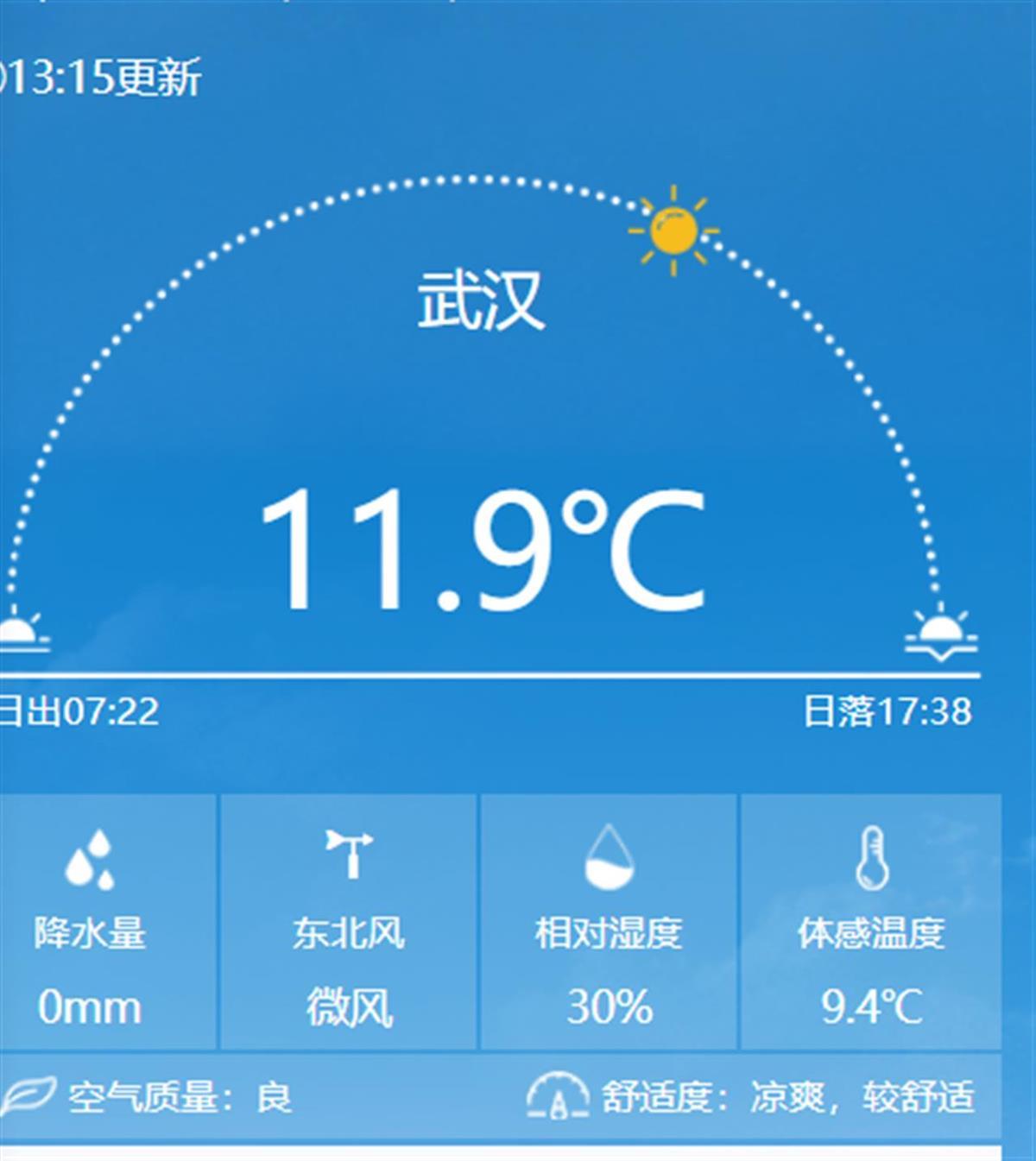 午后1时许,武汉12℃