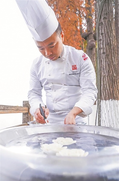 他用豆腐雕刻出的“月季花”,搭配菌汤制作成“松茸菌汤豆腐”这道菜品,成为了酒店畅销的佳肴。