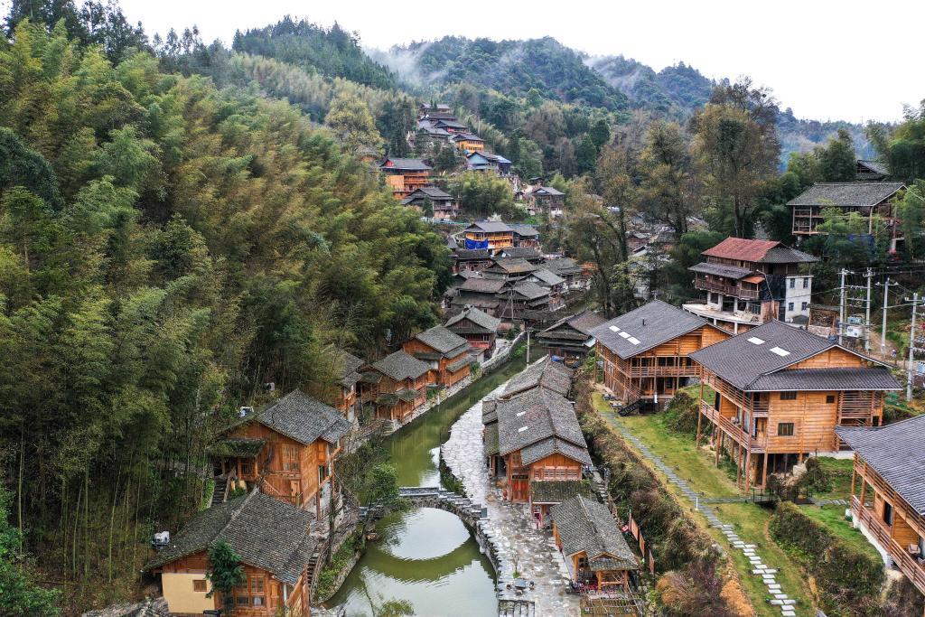 大利侗寨坐卧在绿水青山间,有数百年历史,被列入中国第一批传统村落名录。全村300户1300余位侗族村民,生活在保存完好的干栏式吊脚木楼里,传承着做刺绣、唱侗歌等古老习俗。