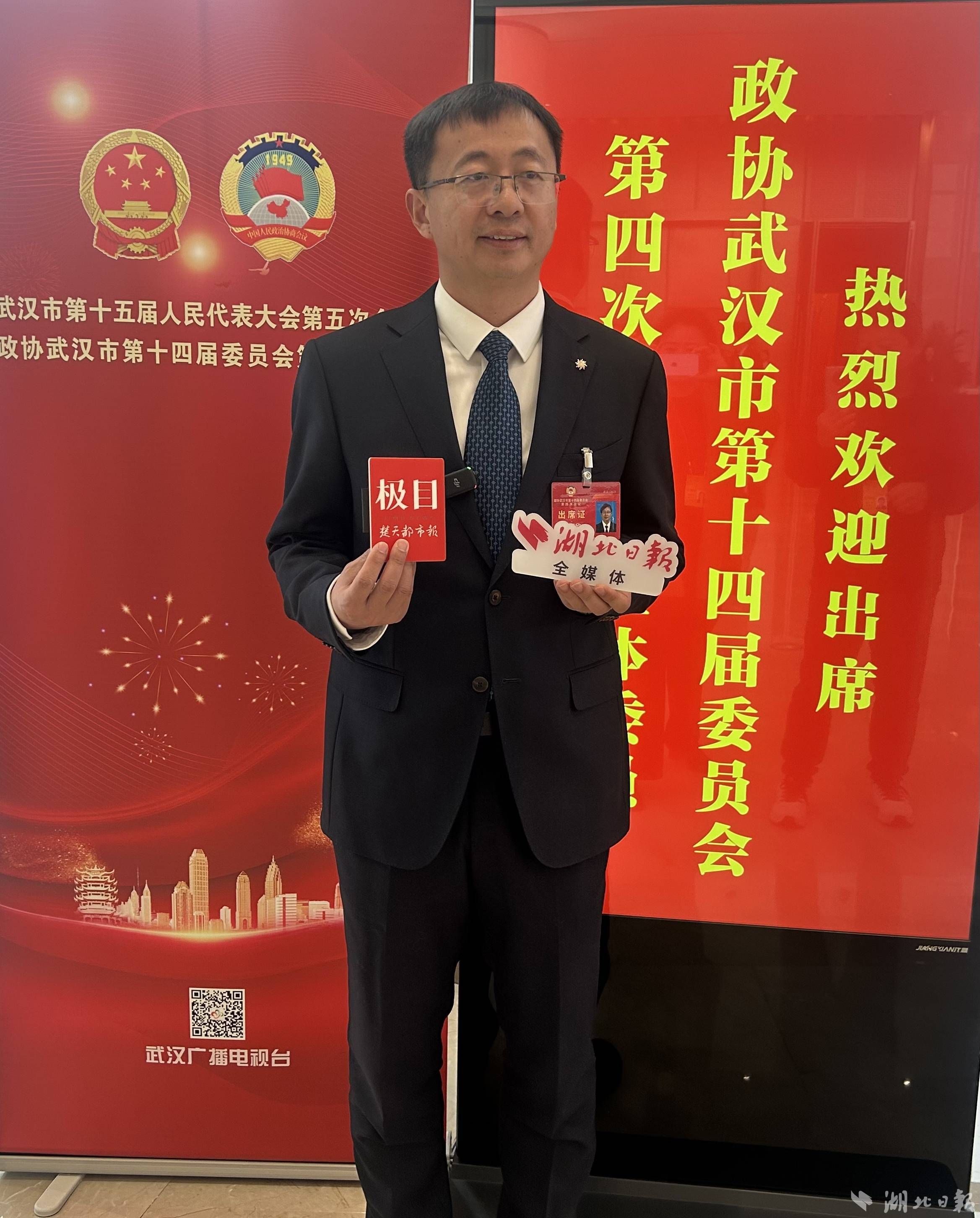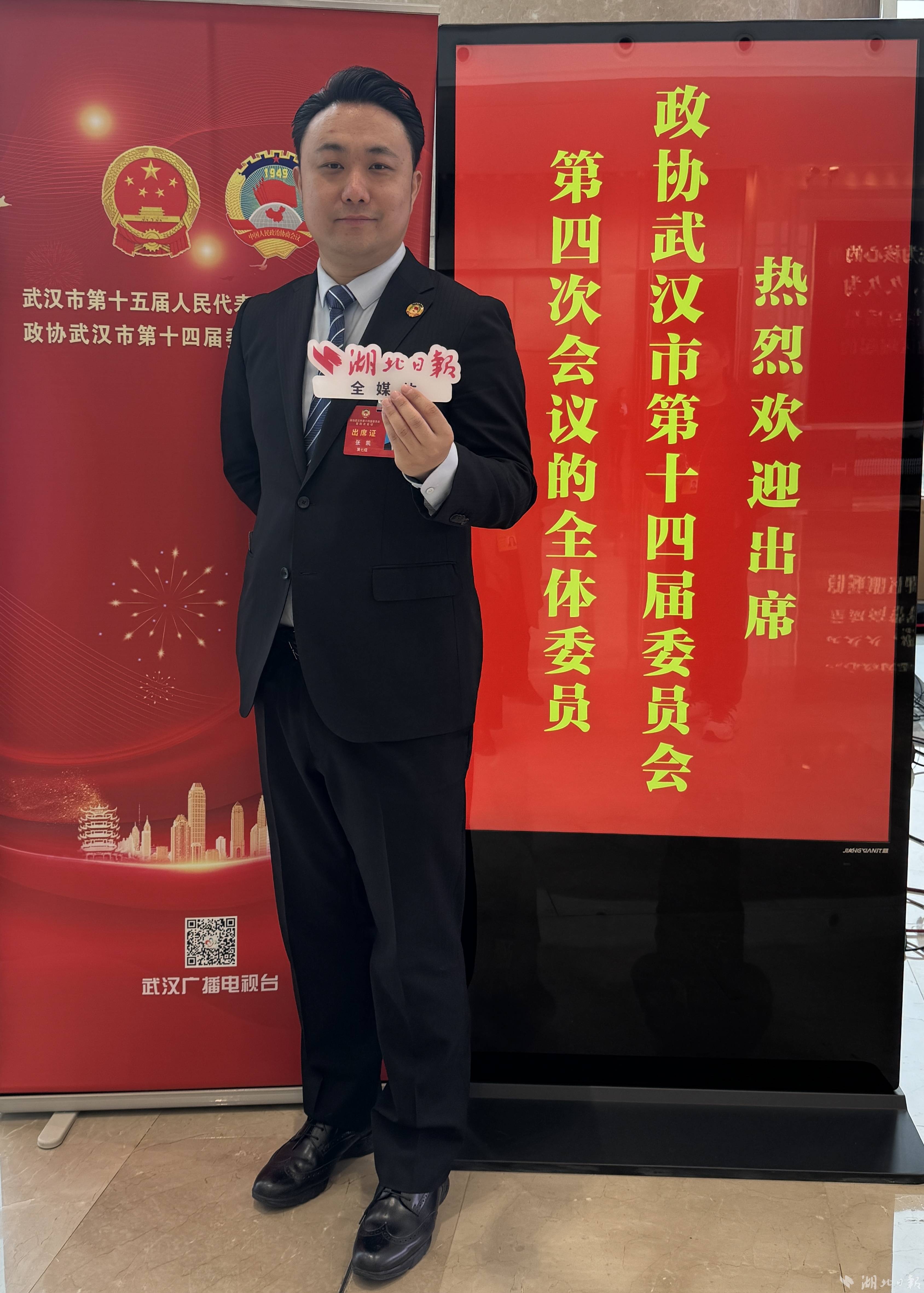 武汉市政协委员张凯接受采访。