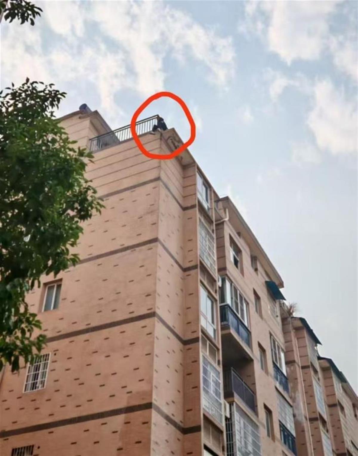 1月4日中午12时48分,咸宁崇阳县一小区楼顶突发惊险一幕,一名男子坐在顶楼边缘,双腿悬空,随时都有坠楼的危险。接警后,天城派出所所长王超带领民辅警迅速赶至现场。