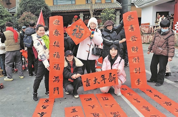 游客喜获春联 摄影:楚天都市报极目新闻记者张艳
