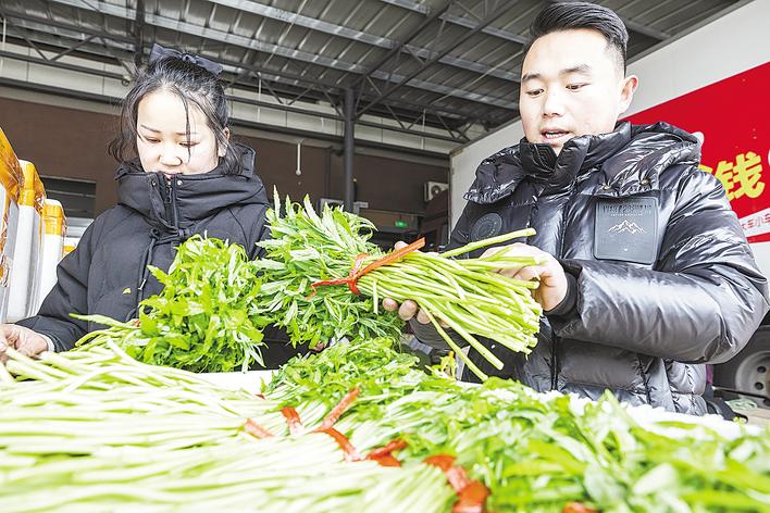 据云梦县农业技术推广中心蔬菜办主任李荃玲介绍,云梦是蔬菜大县,全县种植蔬菜30余万亩。为了搭乘“首衡快车”,该县围绕蔬菜规模化、标准化、设施化、绿色化生产,探索蔬菜种植、采收储藏、加工包装等全环节标准化,成立蔬菜产业协会,组建蔬菜营销服务公司,畅通流通渠道。目前,8家经营主体入驻首衡城,让云梦的藜蒿、萝卜、花包菜等时令蔬菜热销全国各地。
