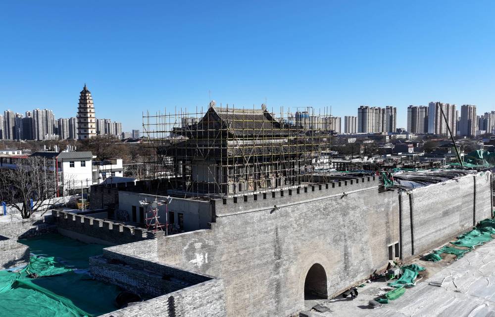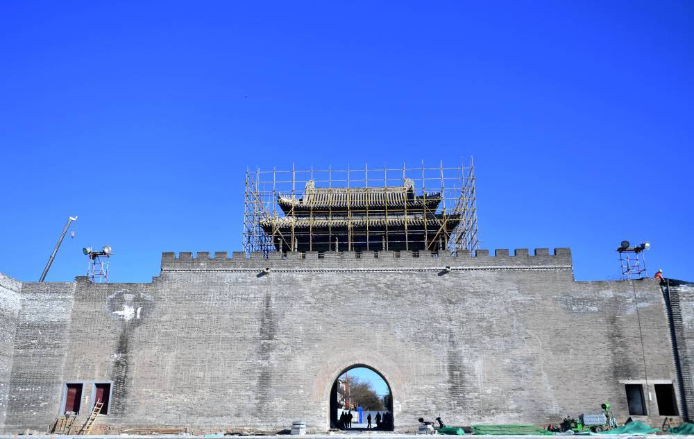 ↑这是1月8日拍摄的正在修缮中的定州南城门。