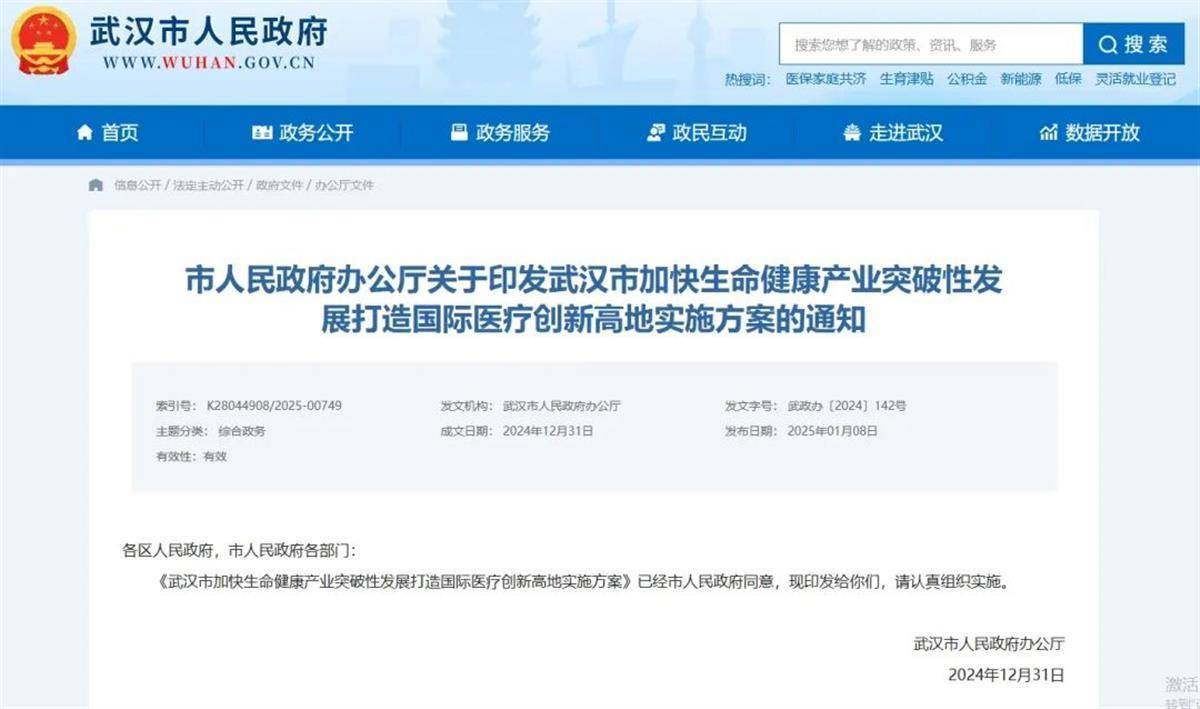 湖北日报讯(记者刘洁)1月8日,《武汉市加快生命健康产业突破性发展打造国际医疗创新高地实施方案》发布,方案提出,到2027年,全市生命健康产业规模力争突破8000亿元,初步建成国际医疗创新高地。