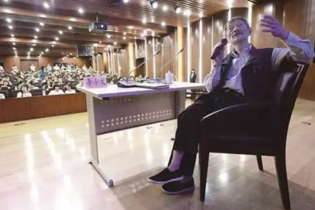 他说:“夕阳方照桃花坞,柳絮飞来片片红。”