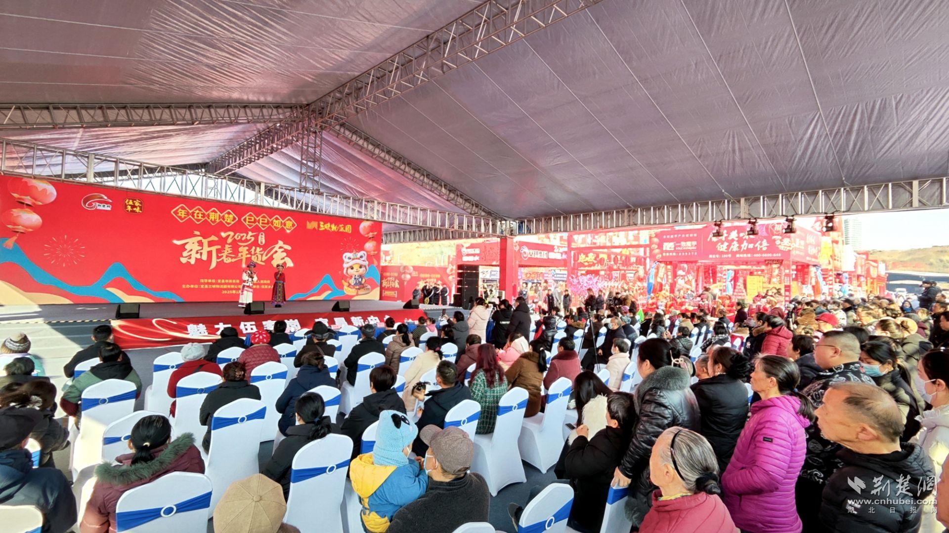 荆楚网(湖北日报网)讯(通讯员张丽 刘芹芹 袁林 蔡喆 张晓霜)逛民俗、赏非遗、买年货、寻年味。1月10日,“年在荆楚 巳巳如意”新春欢乐购暨三峡物流园第十二届新春年货会精彩启幕。民俗表演、非遗集市、年货展销、千家寻味、主题打卡、线上逛展等六大主题活动浓情上演,让广大市民沉浸式打年货,畅享年味,喜迎新春。