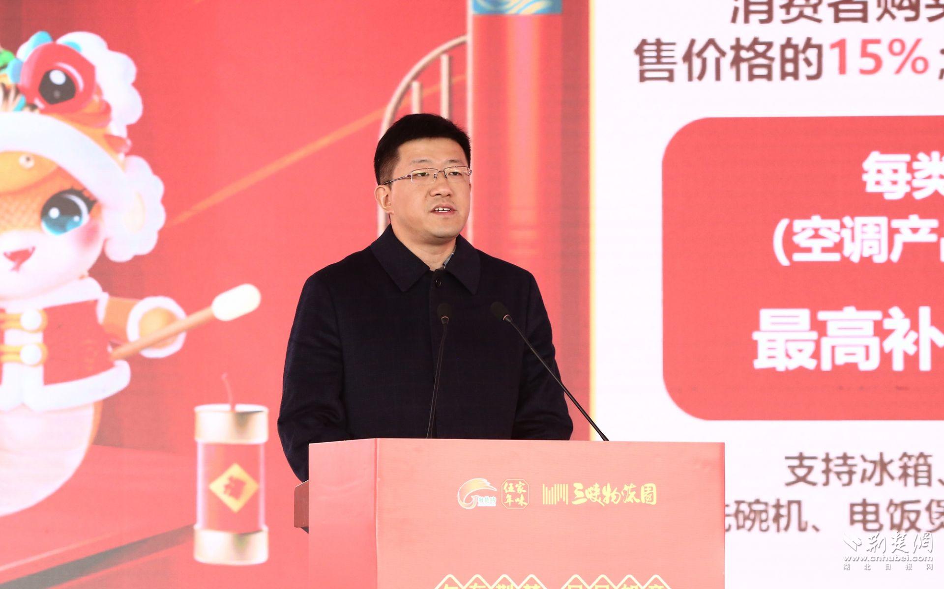 覃扬波发表致辞,她指出,近年来,全市商务系统聚焦“消费促进”主题,坚持“政策+活动”双轮驱动、“换旧+购新”引领带动、“线上+线下”统筹联动,落实落细各项促消费、惠民生政策措施,全市消费市场持续向好,消费潜能、活力不断激发。三峡物流园是全市重点批发市场,是省商务厅认定的生活必需品骨干保供企业,也是宜昌唯一一家商务部重点联系的农产品市场。园区新春年货会已连续举办至第十二届,受到市民朋友和广大消费者的热捧,为宜昌乃至鄂西渝东的消费者提供了一年一度的年货大餐,更是为进一步挖掘消费潜力、促进消费提质扩容提供了良好场景。