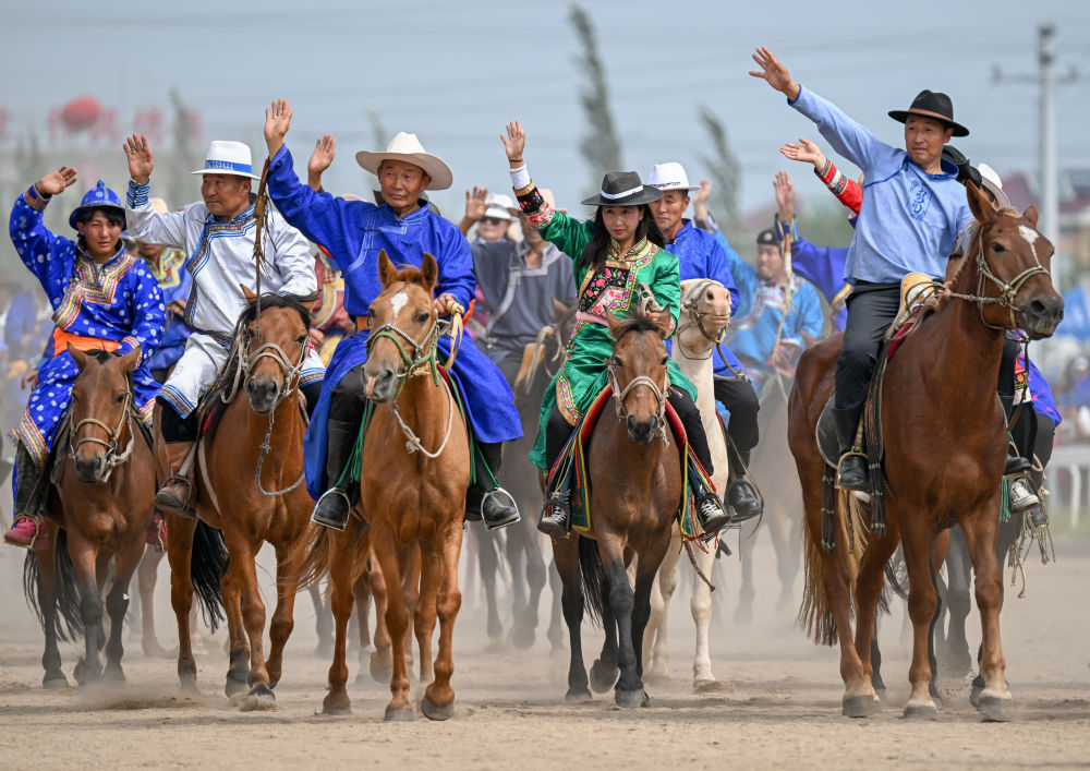 2024年8月18日,第25届8·18哲里木赛马节在内蒙古通辽市科尔沁那达慕文化体育中心开幕。新华社记者 连振 摄