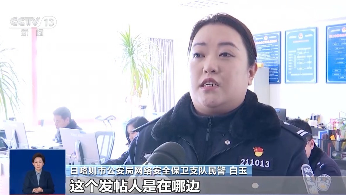 日喀则市公安局网络安全保卫支队民警 白玉:首先,我们会去核一下,这个发帖人是在哪边。如果是我们本地或者区内的,我们会报相关部门或者是各属地的公安机关去依法予以处置。第二个,如果涉及区外的,我们会报上一级部门,通报属地公安机关去依法打击处理。