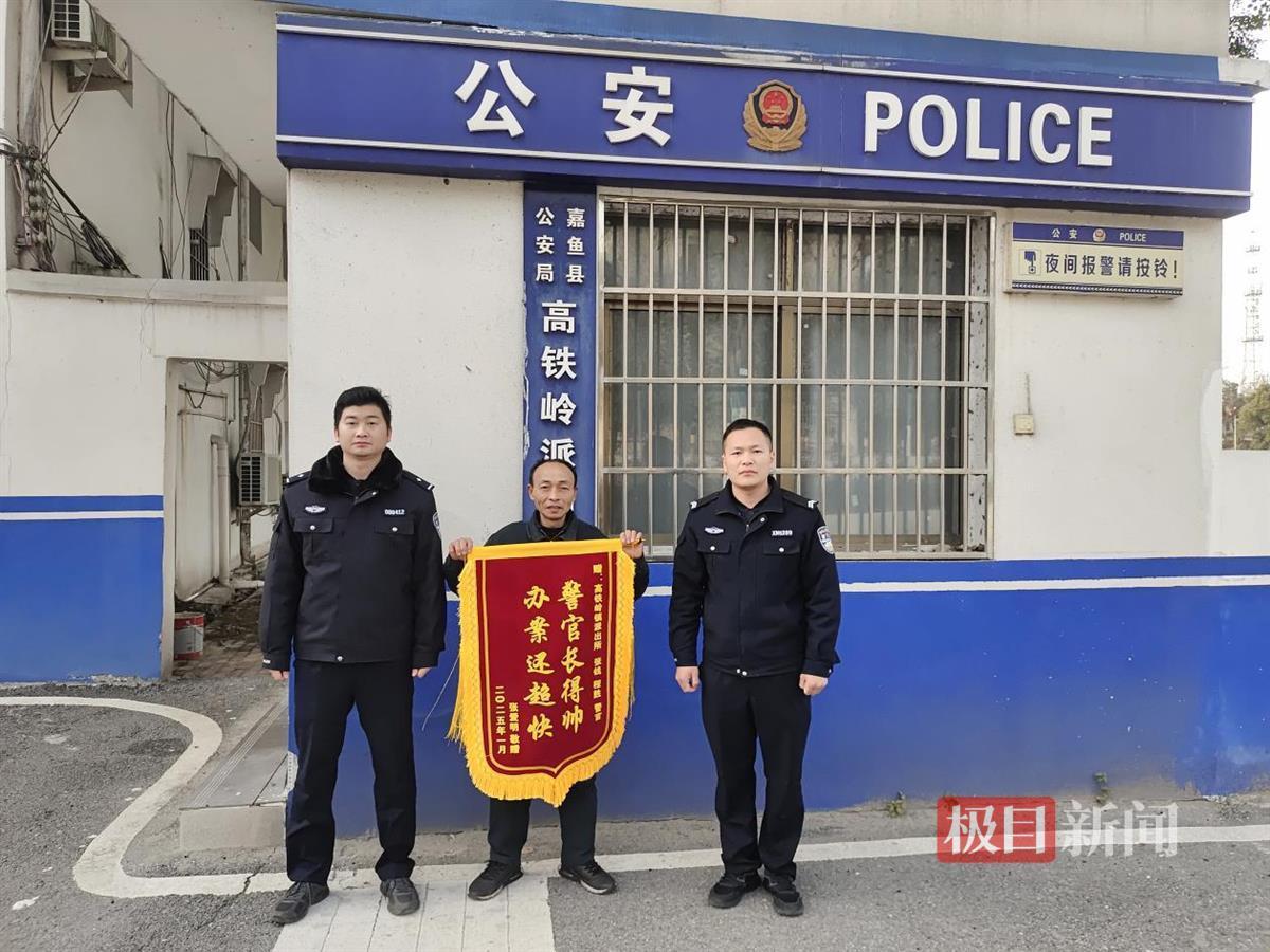 “警察同志,你们辛苦啦!感谢你们为我们一家挽回经济损失,将坏人绳之以法。”1月10日,警察节当天,湖北咸宁嘉鱼县公安局高铁岭派出所收到一面印有“警官长得帅,办案还超快”的锦旗,当事人家属感谢高铁岭派出所民辅警不懈追踪,快速破获一起盗窃土狗案,挽回了群众的财产损失。一面锦旗,一份温暖,这是民警在警察节收到的最好礼物。