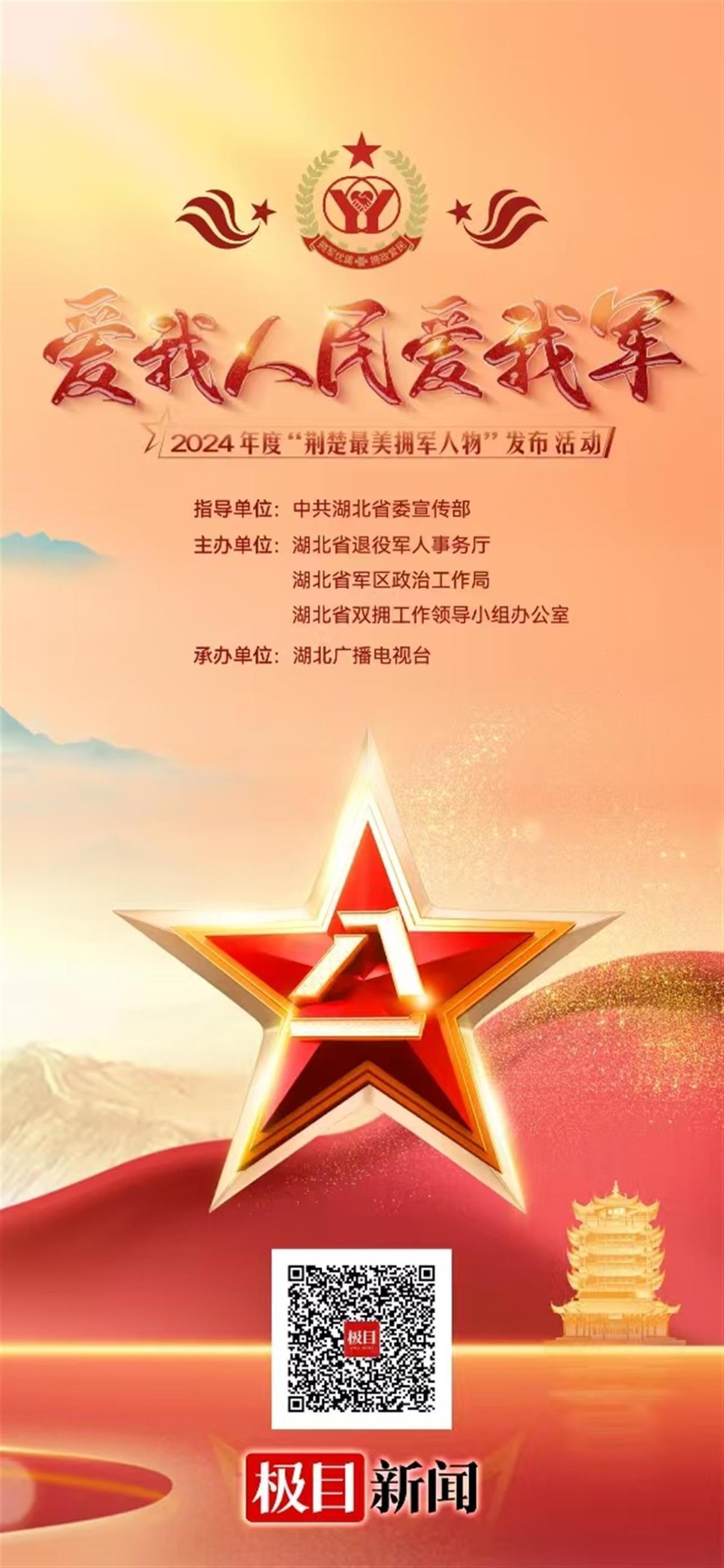 难得举城作一庆,爱我人民爱我军。1月13日19:00,2024年度“荆楚最美拥军人物”发布活动将在武汉举行。届时,中国退役军人、湖北退役军人、新华网、中国交通广播FM94.8、长江云、湖北日报、极目新闻等新媒体平台将进行全程直播,敬请关注!