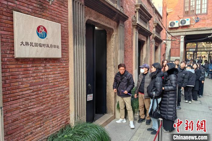 1月12日,韩国游客在上海市马当路上的大韩民国临时政府旧址排队等候参观。自从中国对韩国免签之后,打“飞的”到上海过周末的韩国人越来越多。据上海海关统计,近期韩国籍旅客进境人数显著增长,2024年12月,上海浦东机场口岸进出境韩国籍旅客超13万人次。中新社记者 汤彦俊 摄