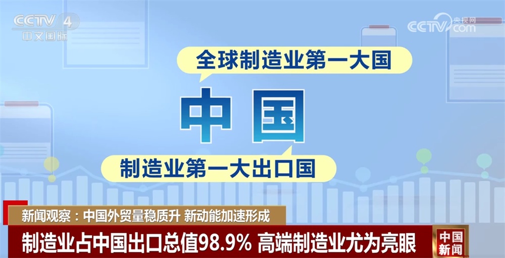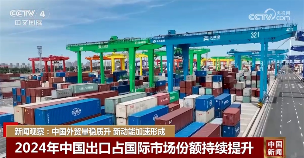 央视网消息:专家表示,在外部压力加大的背景下,2024年中国对外贸易整体保持了“质量提升”发展势头,贸易结构不断优化,新业态新模式亮点频出,新动能加速形成,全年外贸圆满收官。