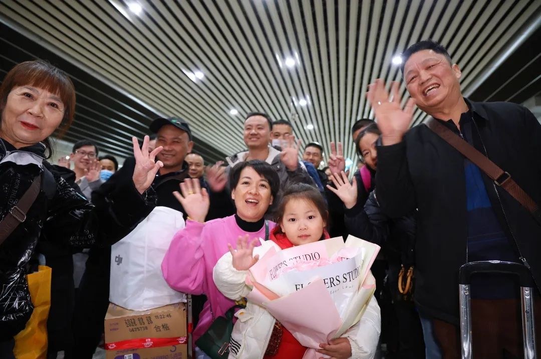 1月12日5时许,丁远州拿着行李到达了检票口,还未走近就已经听到了熟悉的乡音,看到了一张张喜悦的脸庞。