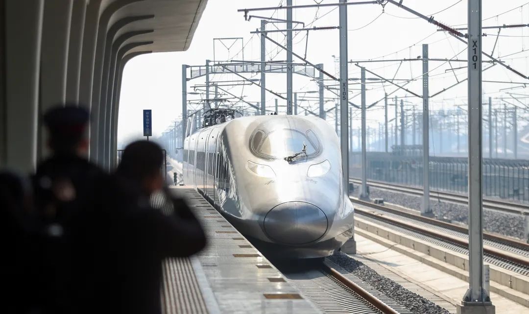 满载返乡人员的高铁驶入站内 郑波 摄