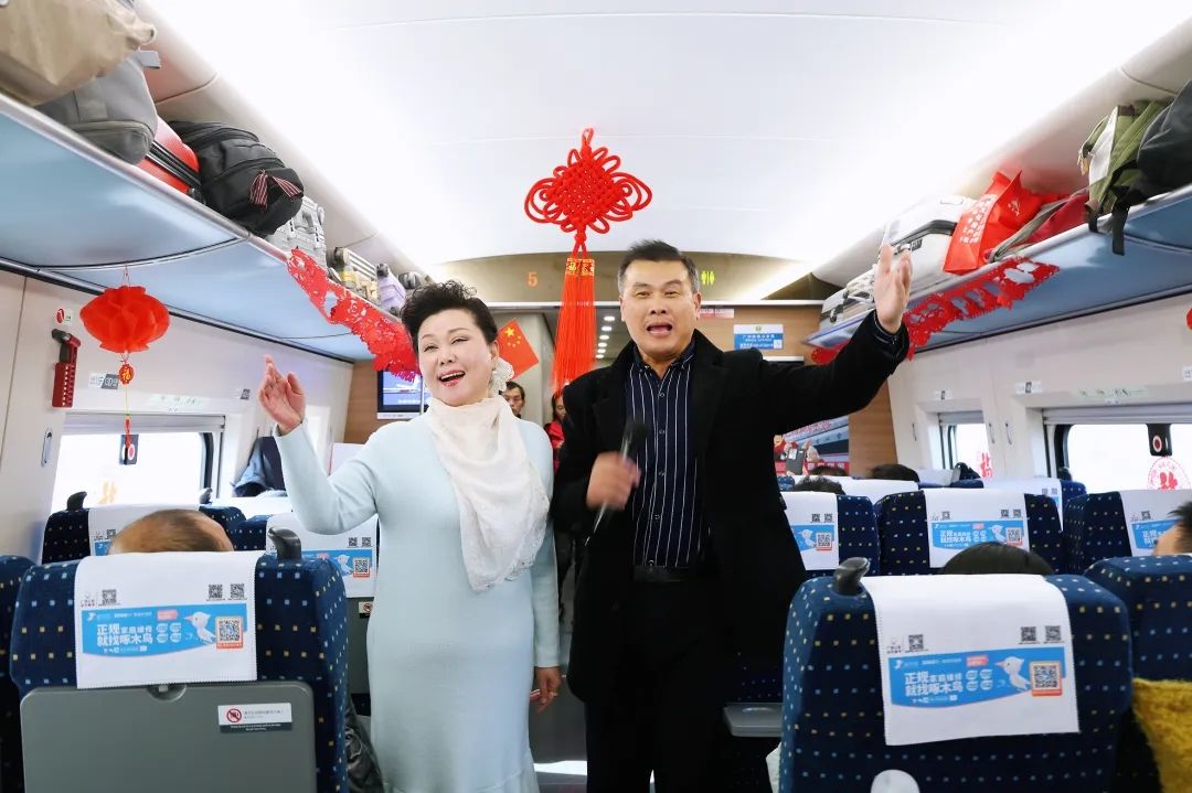 熟悉的旋律响起,旅客们不由自主地跟着哼唱,整个车厢被一片欢乐的氛围包裹。