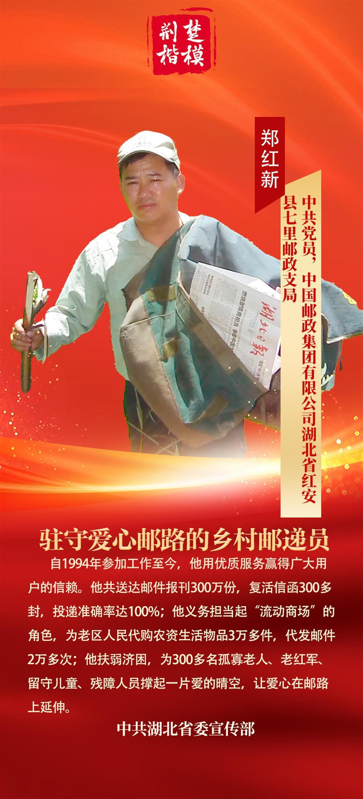 自1994年参加工作至今,他用优质服务赢得广大用户的信赖。他共送达邮件报刊300万份,复活信函300多封,投递准确率达100%;他义务担当起“流动商场”的角色,为老区人民代购农资生活物品3万多件,代发邮件2万多次;他扶弱济困,为300多名孤寡老人、老红军、留守儿童、残障人员撑起一片爱的晴空,让爱心在邮路上延伸。他荣获“湖北五一劳动奖章”“湖北省劳动模范”等荣誉称号。