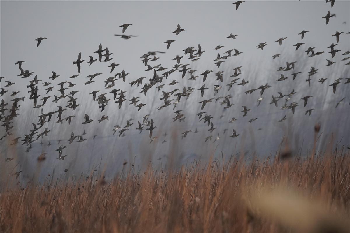 经过认真观测和精确统计,返湾湖此次共监测到42种近50000只越冬鸟类。国家一级保护动物青头潜鸭的出现令人精神一振,国家二级保护动物花脸鸭、普通鵟、游隼等11种也位列其中。尤为引人注目的是,花脸鸭的集群数量超过了1500只。经专家确认,如此规模的花脸鸭种群在我省越冬尚属首次。