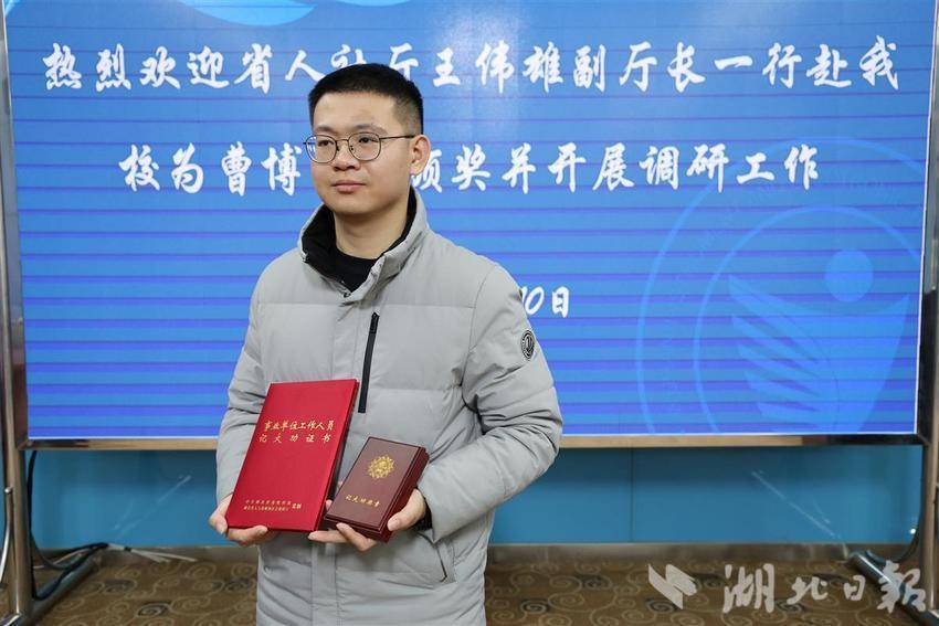 湖北日报讯(记者张倩倩、通讯员谢倚)1月10日,武汉市仪表电子学校00后教师曹博收到了湖北省人力资源和社会保障厅颁发的“记大功”证书。该证书用于嘉奖取得重大突破性成就、作出杰出贡献,在本地区本行业本领域产生重大影响的事业单位工作人员和集体。此前,郑钦文等奥运会金牌选手也曾获此奖励。