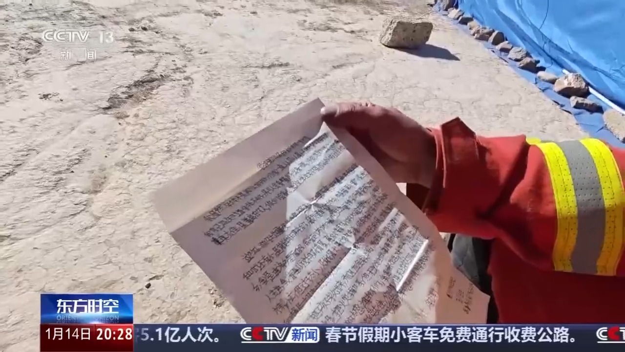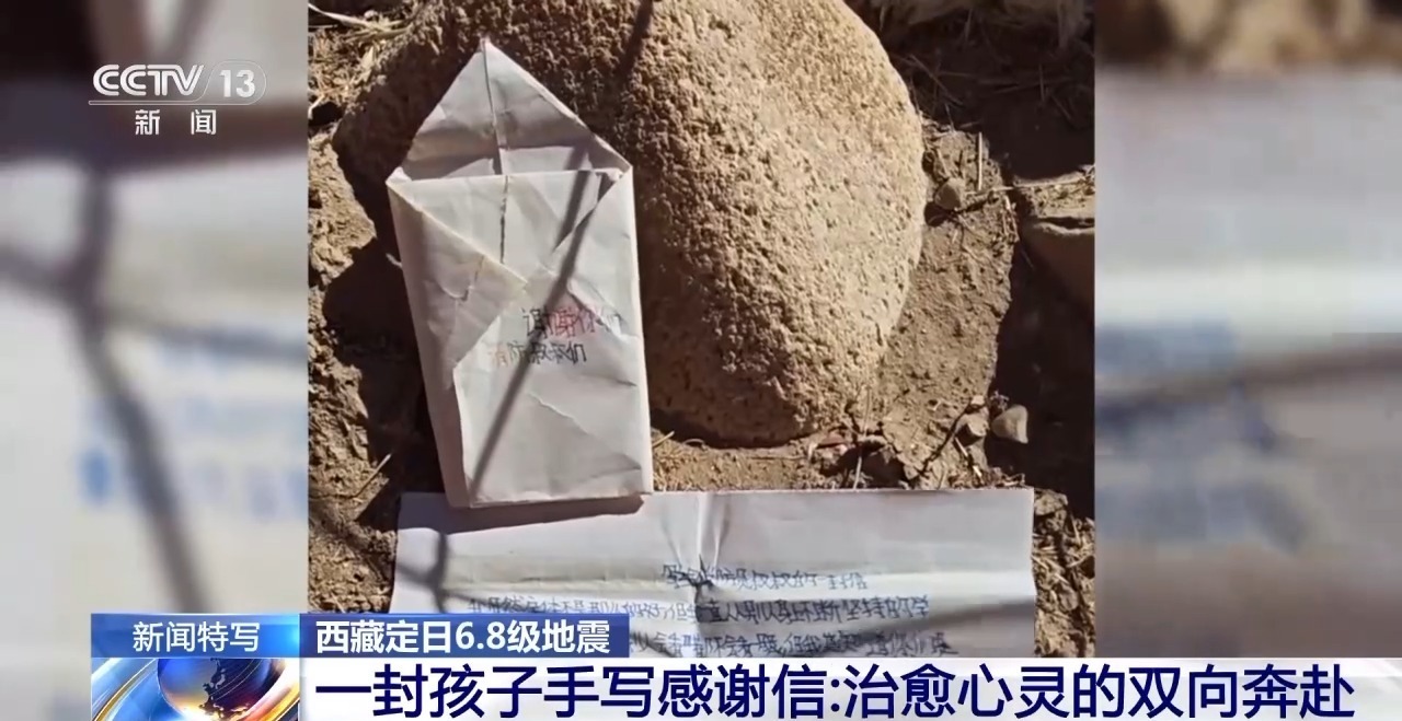 12日中午,消防员旦增赤列在曲洛乡班久岗村安置点忙碌时,一个女孩突然将一个叠好的小纸包塞到他手里。装信的纸包上写着“谢谢你们,消防员叔叔”。