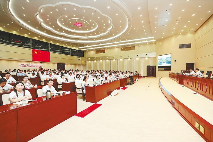 省人大常委会坚持用习近平新时代中国特色社会主义思想凝心聚魂,开展深化政治建设系列活动。图为2024年8月,省人大常委会机关学习贯彻党的二十届三中全会精神宣讲报告会。