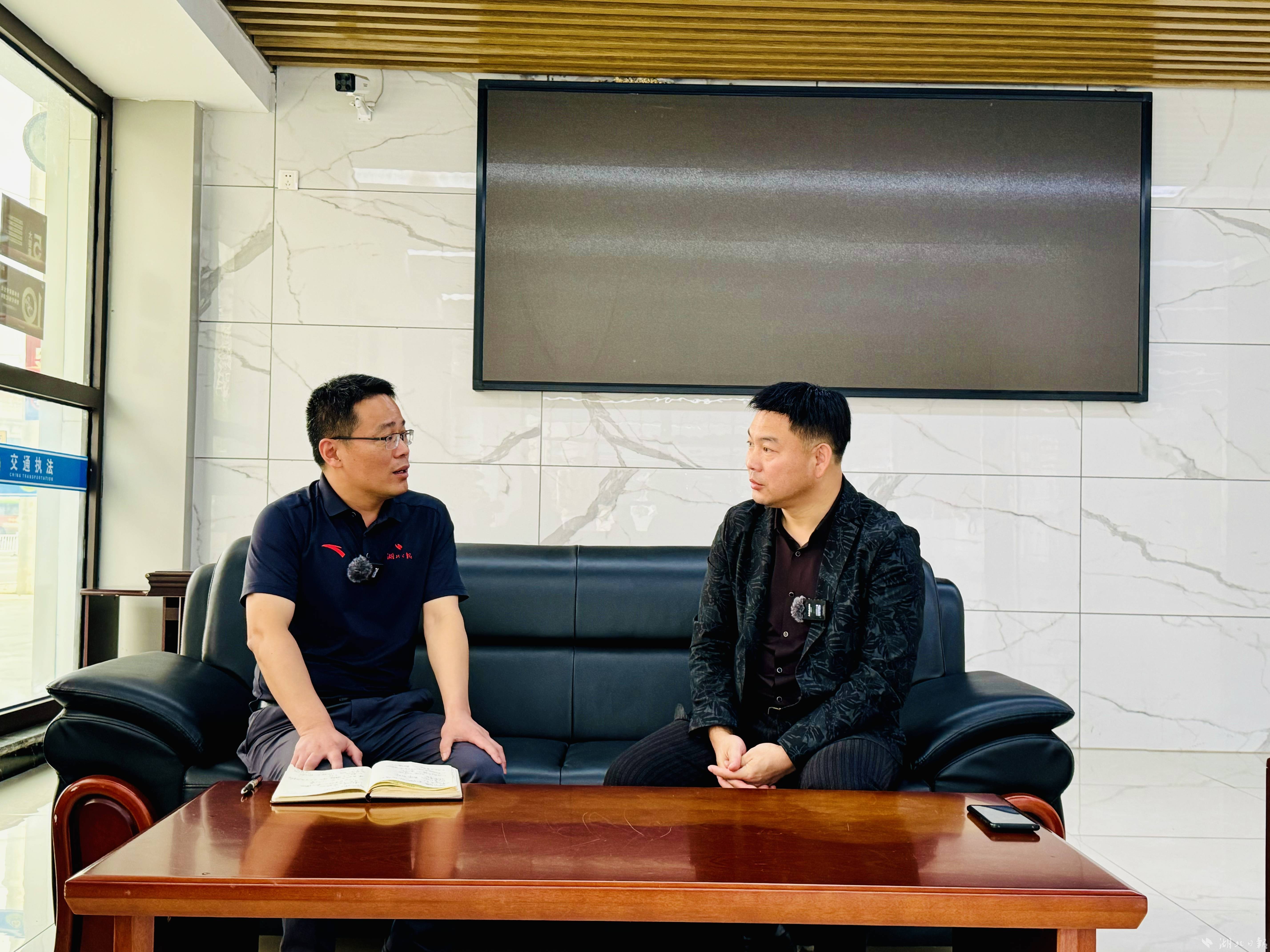 2024年10月10日,湖北日报全媒记者汪洋(左)在通城县面对面采访“白车侠”杜志军(右)。
