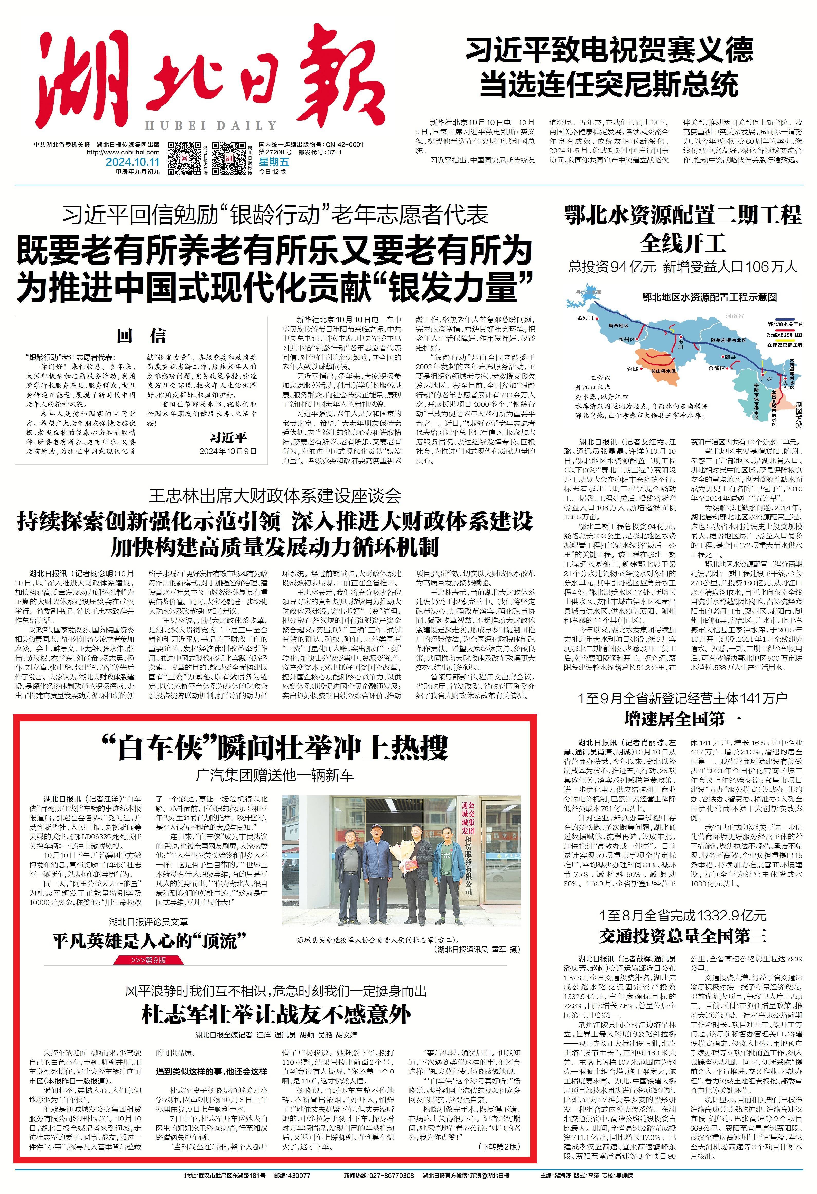 湖北日报讯(记者汪洋)1月15日,中央文明办发布2024年第四季度“中国好人榜”,包括“白车侠”杜志军在内,我省共有9人上榜。