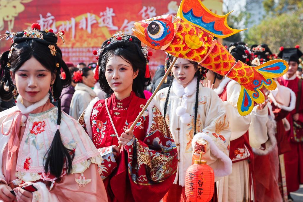 2024年12月31日,“宋韵思潮 寻迹匠心”杭州非遗年货节在杭州市上城区望江街道日信国际广场开市。(新华社记者 徐昱 摄)