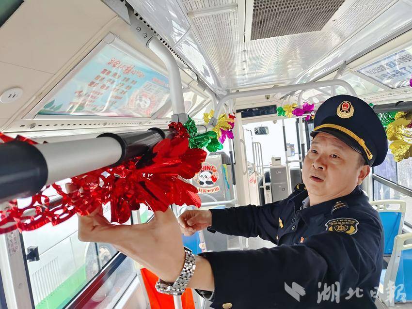 “这窗花一贴,内饰一挂,年味一下就上来了,真心希望我们精心布置的车厢环境,能够给搭乘公交回家的市民朋友带来愉悦和温馨。不过,比起氛围感的营造,出行安全,更是重中之重。”在体育路公交站点,执法队员李少勇和舒夏添协助司乘人员装扮车辆,还不忘对司乘人员作出提醒。