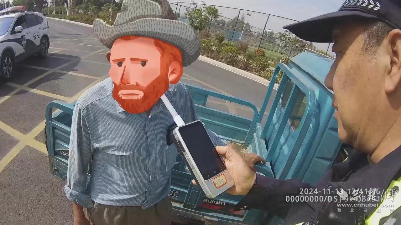 11月13日12时40分左右,杨某骑着“无牌”电动三轮摩托车经过经开区交通大队在康隆路勤务点位。交警依法将其拦下检查,发生杨某身上有酒味,准备对其进行吹气检测, 杨某丝毫未认识到自身行为已违法,不仅坦然承认自己无驾驶证且喝过酒,还编造“我只是在小区内绕行,行驶在小区内部道路”来逃避责任。
