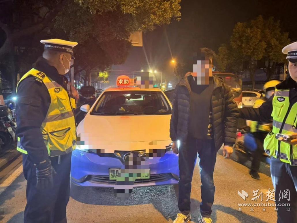 2024年1月12日21时左右,青山区交通大队在青山区工业四路开展夜查工作时,一辆车顶灯亮着“求助”字样出租车行驶至检查点,交警遂将车拦下询问是否需要帮助,司机及副驾乘客一脸诧异地表示:“没有异常情况。”