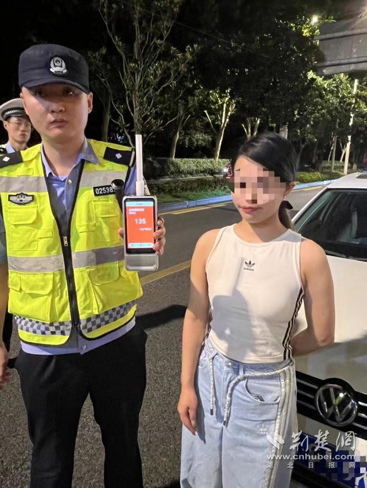 7月21日凌晨1点许,江岸区交通大队民警在黄浦大街工农兵路路口,发现一辆浙C***K9白色小车情况可疑,拦停检查发现车内很大酒味,驾驶人陈某的脸上有哭过的痕迹,对其呼气式酒精测试显示酒精含量为135mg/100ml,涉嫌醉驾。